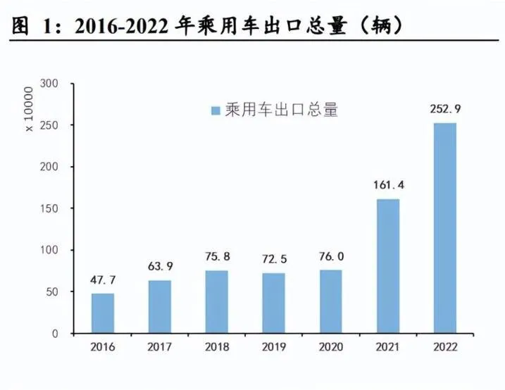 Қытай автомобиль қауымдастығының мәліметі бойынша, 2021/2022 жж. жеңіл көліктердің экспорты 1,61 / 2,53 миллион, бір жылмен салыстырғанда +112%/+57% құрады. Қаңтар-мамыр айлары аралығында жеңіл көліктер экспорты 1,47 миллионды құрады, бұл жылдағы өсімді екі есеге жуық арттырды. Ірі экспорттық автомобиль компанияларының арасында жергілікті бренд экспортының қазіргі өкілдері Chery, Geely, Great Wall, BYD, Changan және тағы бес автокөлік компаниялары болып табылады. Жеңіл көліктер тұрғысынан алғанда, 2023 жылдың қаңтарынан мамырына дейін осы бес автокөлік компаниясы 640 000 көлікті экспорттады, бұл жеңіл көліктердің жалпы экспортының 46% құрайды, оның ішінде Chery экспорты шамамен қалған төртеуінің сомасына тең болды. Шетелге жаңа энергия экспорттау тұрғысынан алғанда, 2022 жылы 610 000 жаңа энергетикалық көлік экспортталады, ал Tesla және SAIC MG экспорт көлемінің 68% үлесін қосады. Сонымен қатар, қазіргі шетелде жаңа энергияны орналастыру салыстырмалы түрде жылдам. BYD-ге келетін болсақ, тұтастай алғанда, жеке меншік маркалы электр машиналарының экспорты әлі бастапқы сатыда, жоғары сапалы экспорттық үлгілердің жеткілікті жеткізілімі жоқ және нарықты одан әрі дамыту қажет.